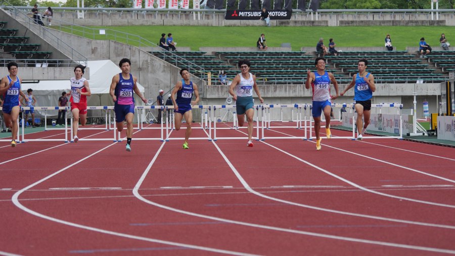 スタート直後から各選手が積極的な走りを展開し、前半からスピードを活かしたハードリングで中盤を通過。特に山内選手は前半からコンスタントなリズムでハードルをクリアし、後半の直線でも力強い加速を見せて後続を突き放す形となった。ファイナルラップに入ってもスピードを維持し、安定した技術でフィニッシュラインを駆け抜けた。